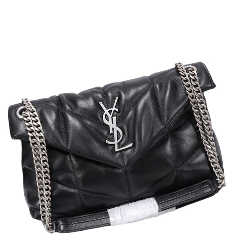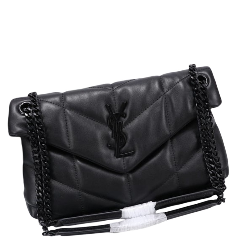 SAINT LAURENT LOULOU SMALL CHAIN BAG IN MATELASSE Y BLACK NOIR 23CM