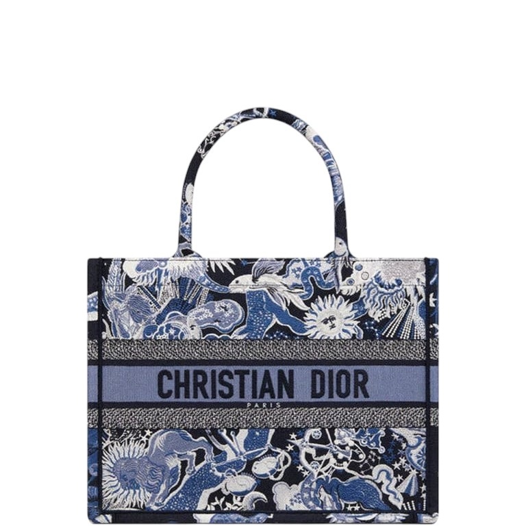 DIOR MEDIUM 36CM BLUE OBLIQUE EMBROIDERY BOOK TOTE
