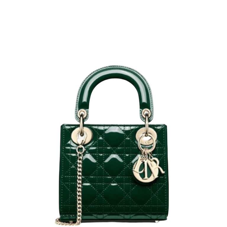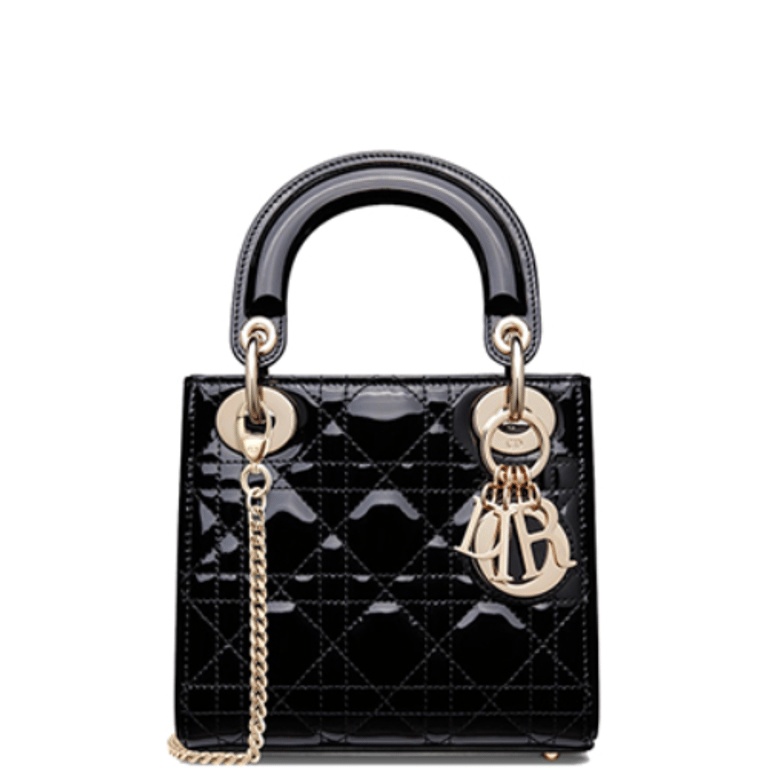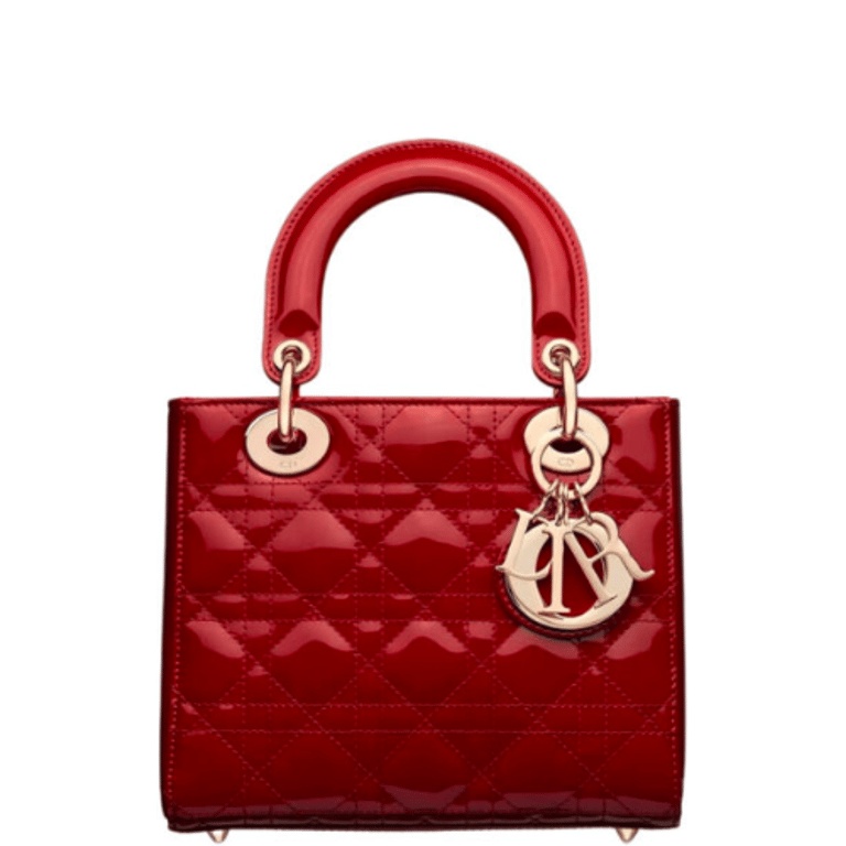 DIOR SMALL LADY CHERRY RED PATENT CANNAGE CALFSKIN 17CM