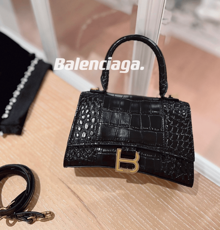 BALENCIAGA CROC HOURGLASS BAG BLACK 23CM