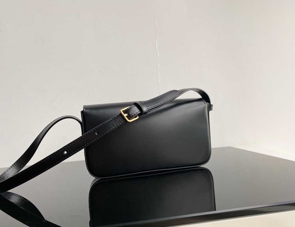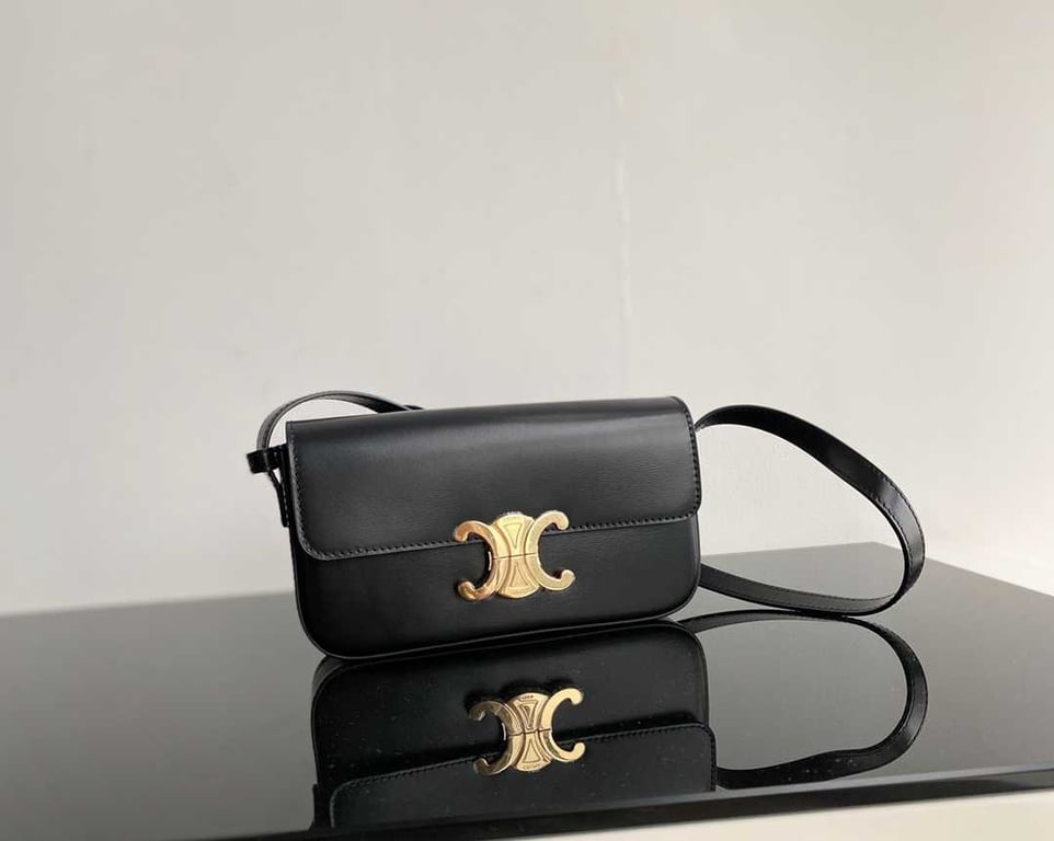 CELINE TRIOMPHE SHOULDER BAG IN SHINY CALFSKIN BLACK