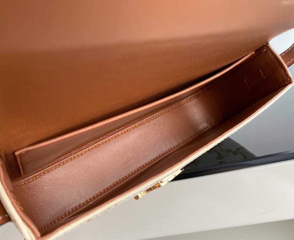 CELINE TRIOMPHE SHOULDER BAG IN SHINY CALFSKIN GOLD CC WHITE