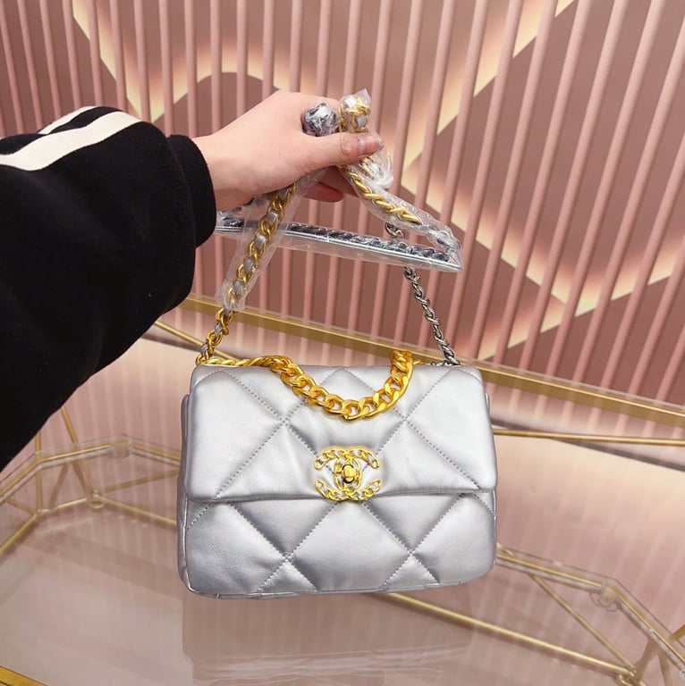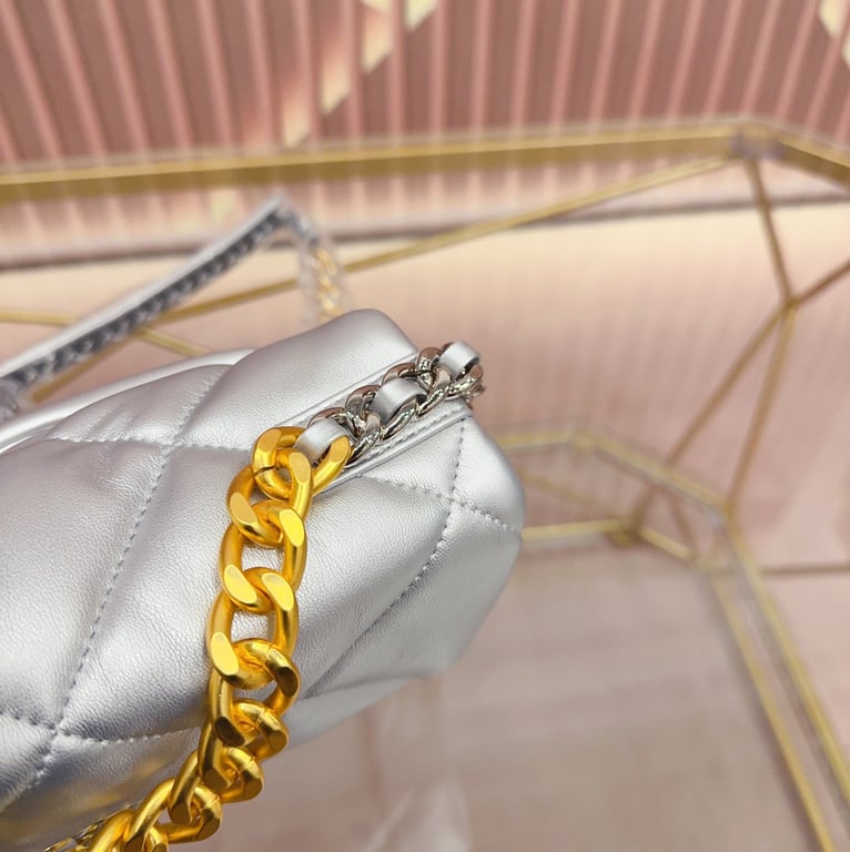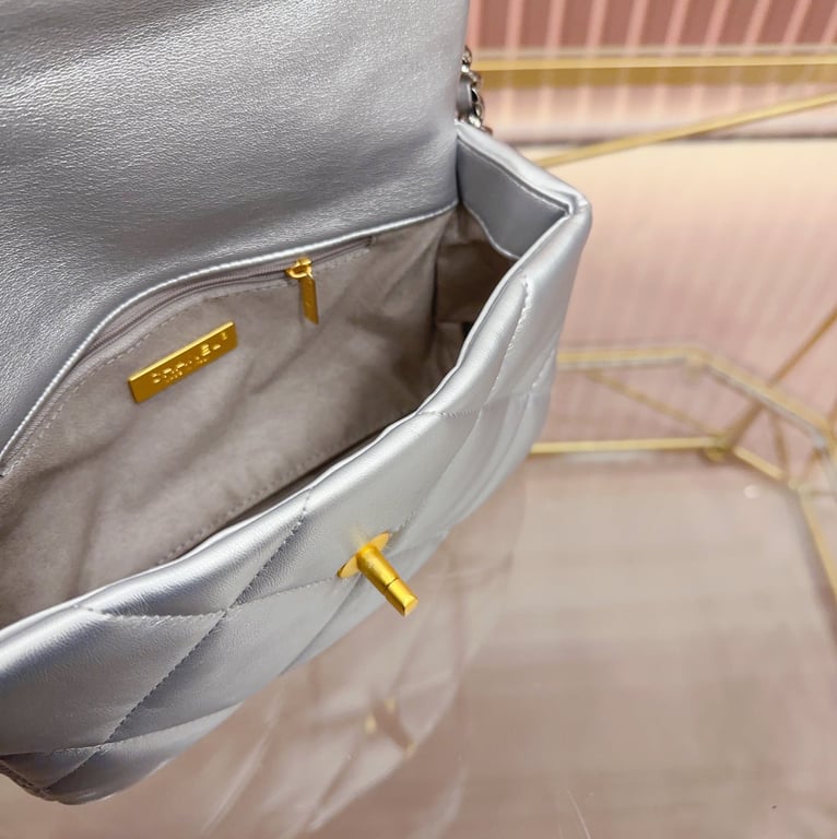 CHANEL 19 FLAP BAG IN SILVER LAMBSKIN 25CM