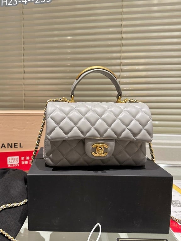 CHANEL 22B FLAP BAG WITH GOLD HARDWARE TOP HANDLE GREY 20CM AS2431