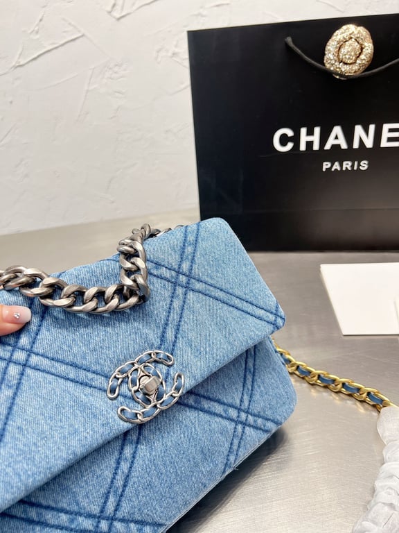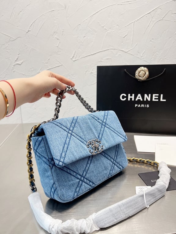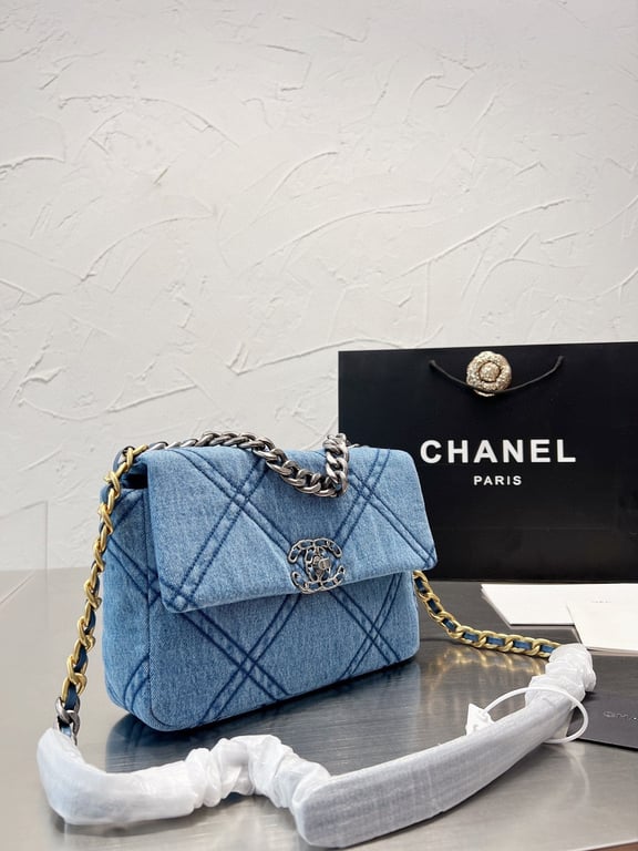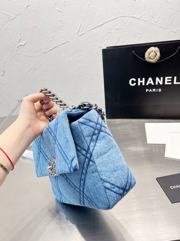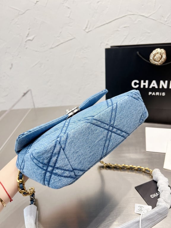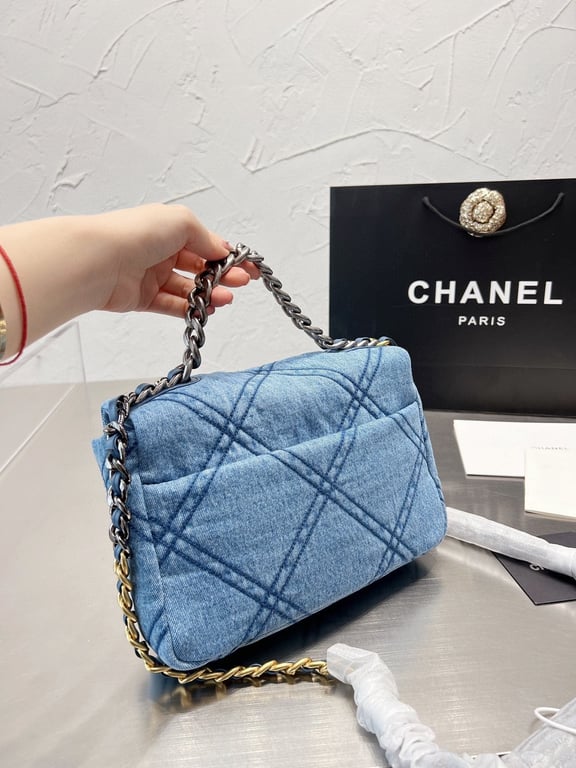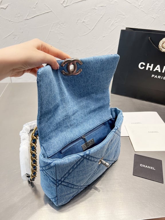 CHANEL 19 HANDBAG DENIM BLUE FOR WOMEN 10.1IN/26CM