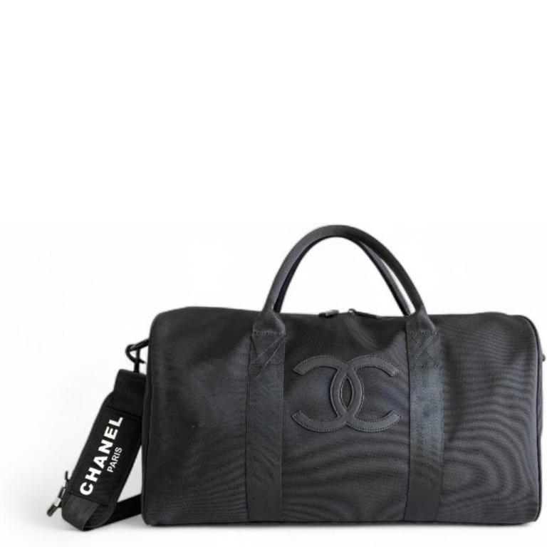 CHANEL BLACK CC LOGO NOVELTY BOSTON TRAVEL BAG
