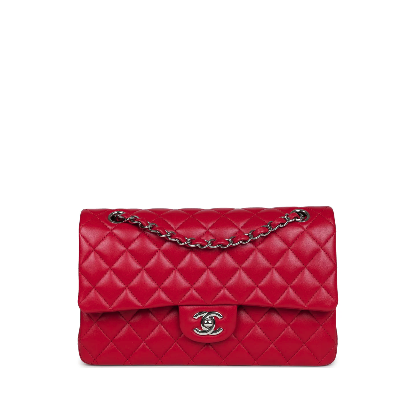 CHANELL’S CLASSIC HANDBAG RED SILVER HARDWARE