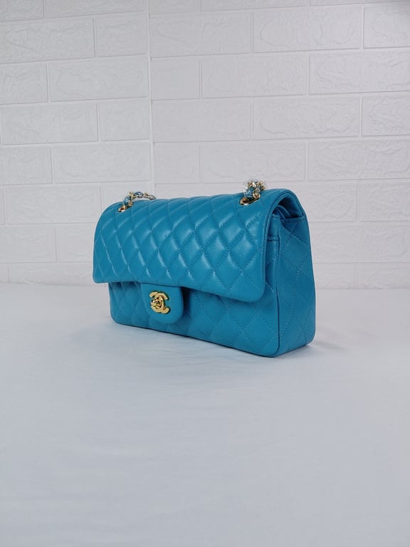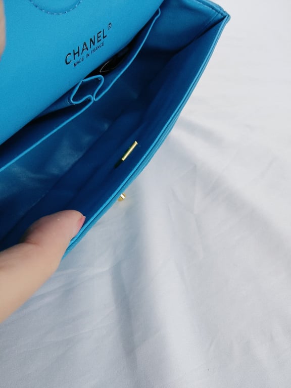 CHANEL CLASSIC MEDIUM LAMBSKIN FLAP BAG BLUE GOLD 25CM