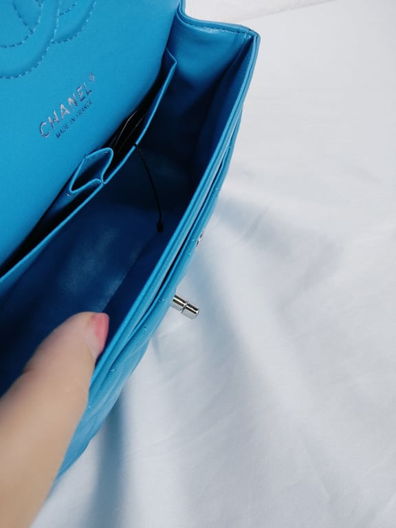 CHANEL CLASSIC MEDIUM LAMBSKIN FLAP BAG BLUE SILVER 25CM