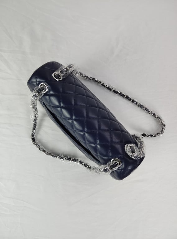 CHANEL CLASSIC MEDIUM LAMBSKIN FLAP NAVY AND SILVER 25CM