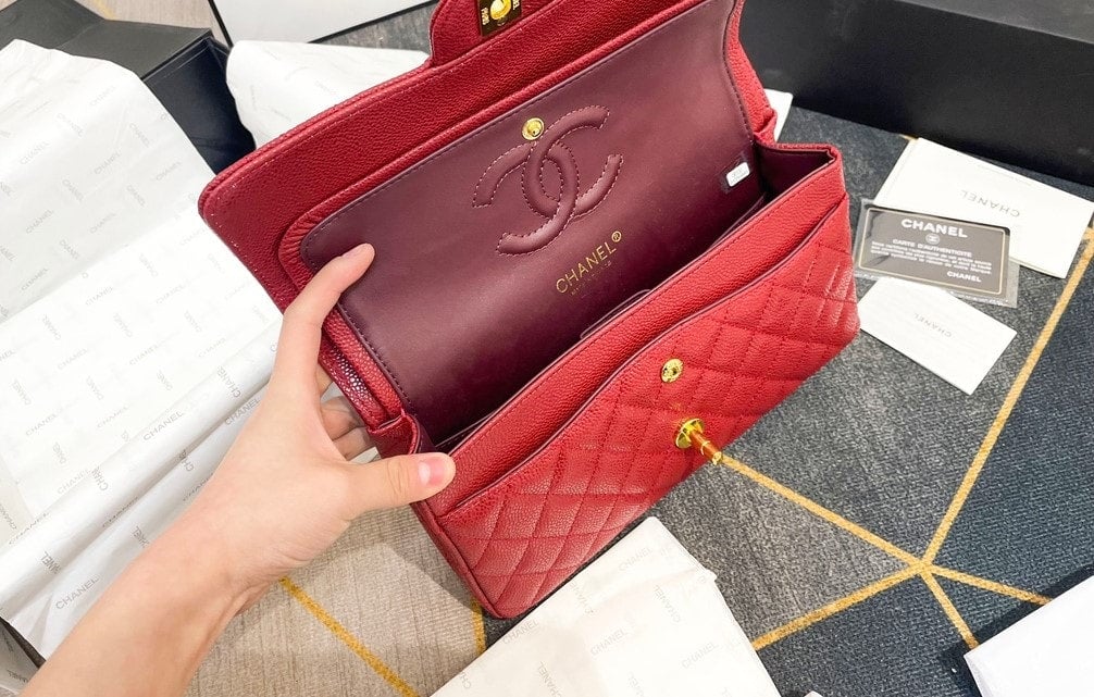 CHANEL CLASSIC SMALL FLAP BAG DARK RED CAVIAR 26CM
