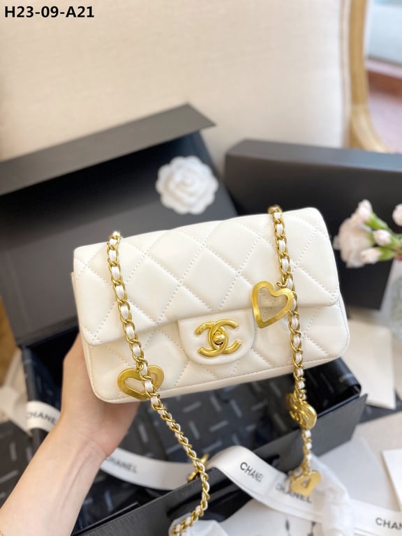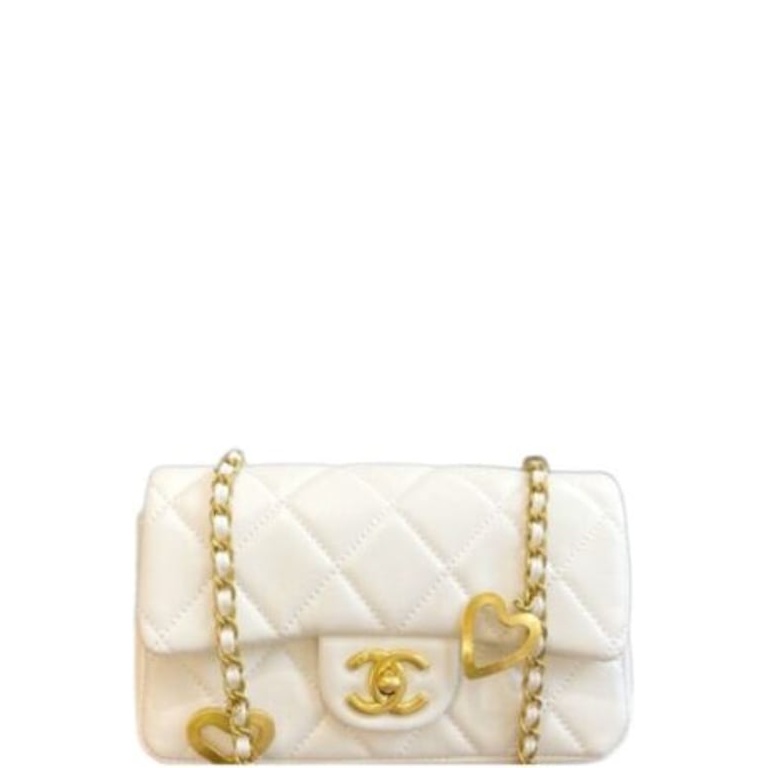 CHANEL FLAP BAG WITH HEART CC CHARM WHITE 20CM