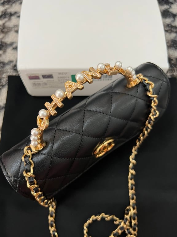 CHANEL MINI FLAP BAG WITH TOP HANDLE BLACK