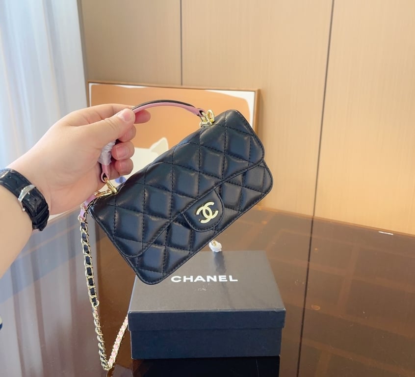 CHANEL MINI FLAP BAG WITH TOP HANDLE BLACK