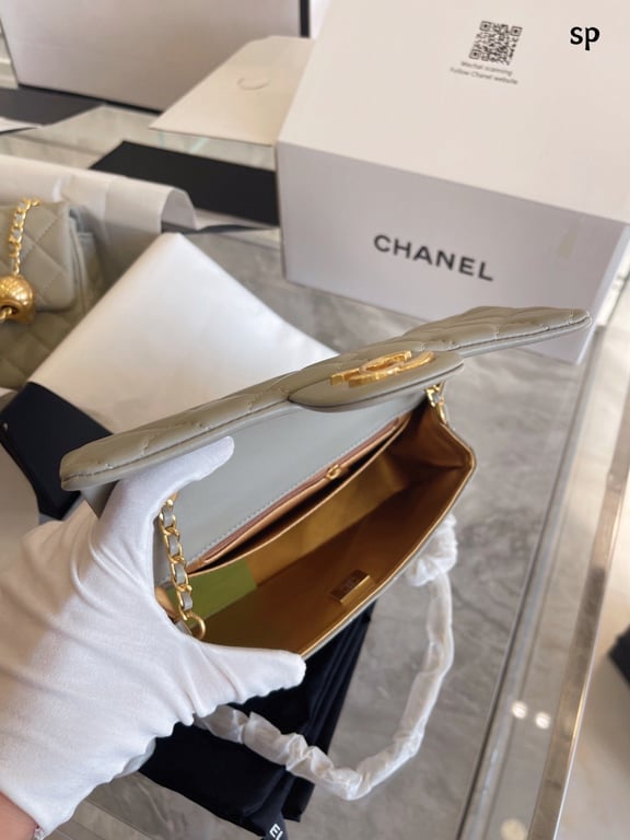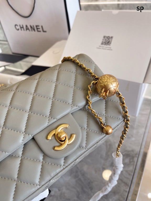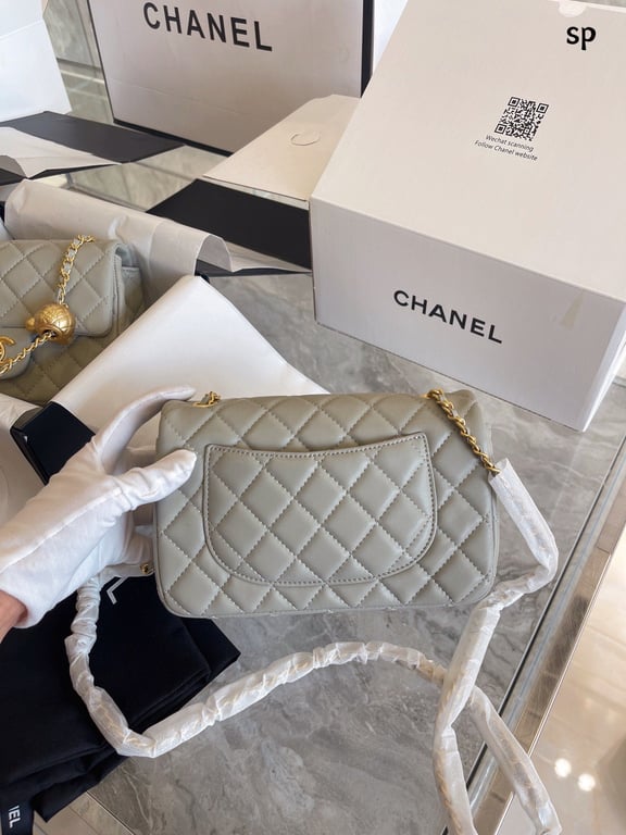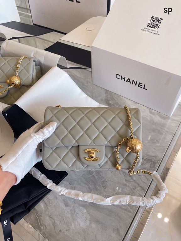CHANEL PEARL CRUSH QUILTED FLAP BAG GREY 20CM