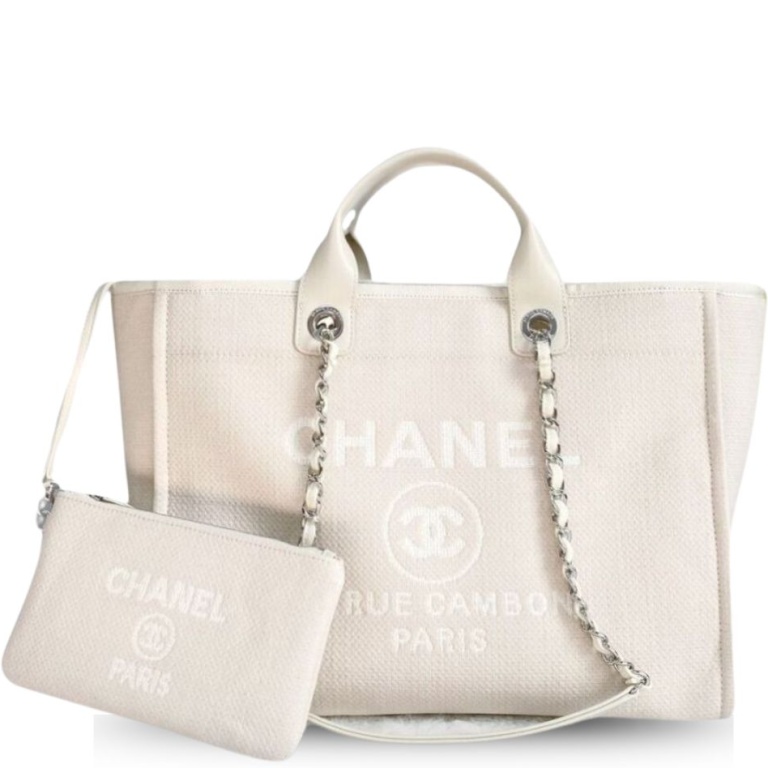 CHANEL SMALL SHOPPING BAG SILVER HARDWARE CREAM