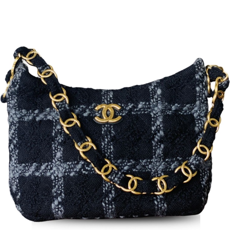 CHANEL TWEED BLACK HOBO BAG 6,9IN/17,5CM