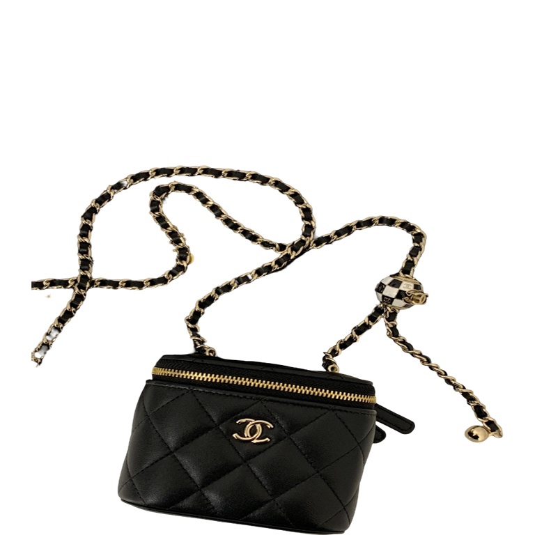CHANEL VANITY WITH CHAIN BLACK 6.6 IN / 17 CM