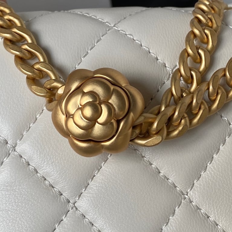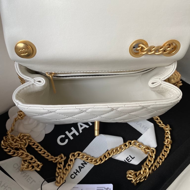 CHANEL MINI FLAPBAG WITH TOP HANDLE WHITE