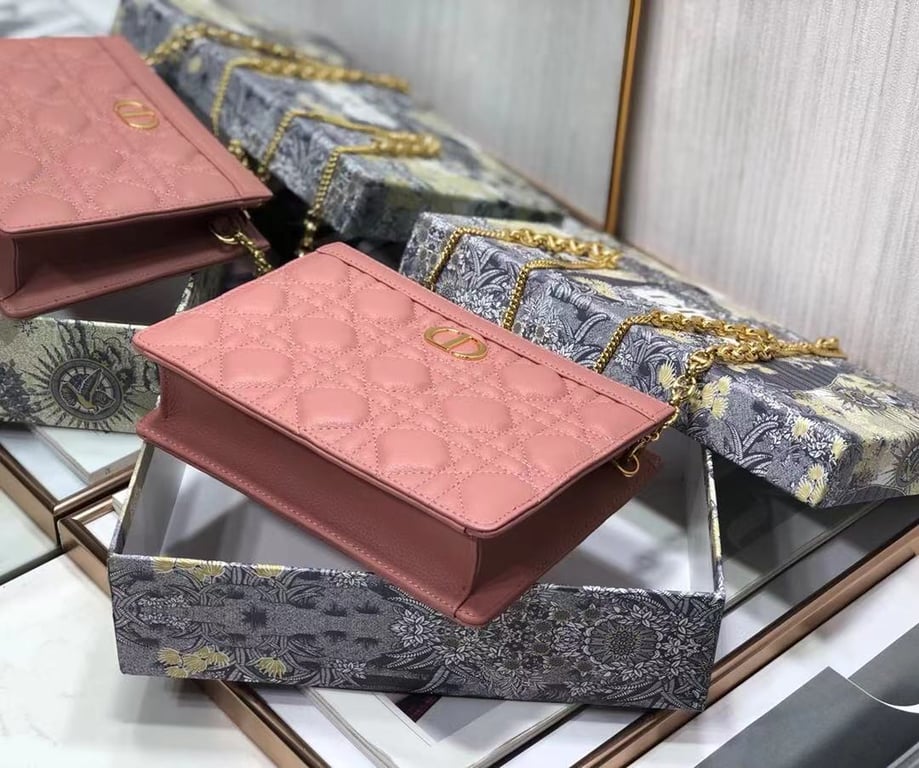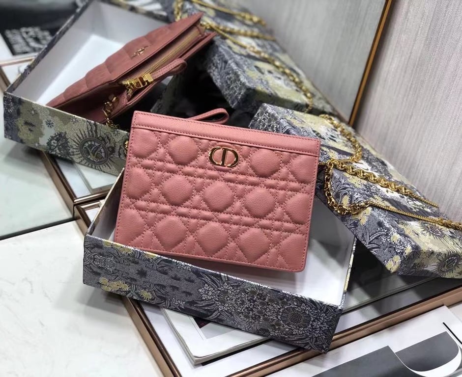 DIOR CARO ZIPPED POUCH WITH CHAIN DUSTY CORAL PINK S5106UWHC_M76P