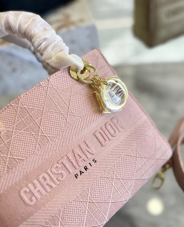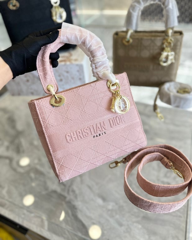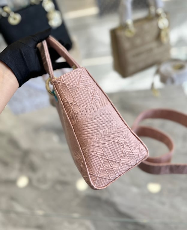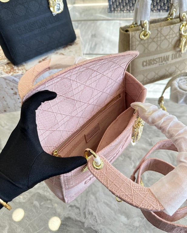 DIOR 24CM ROSEWOOD CANNAGE EMBROIDERY LADY D LITE BAG