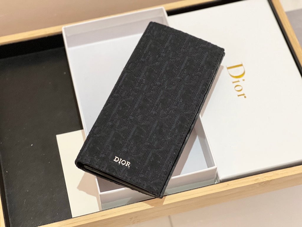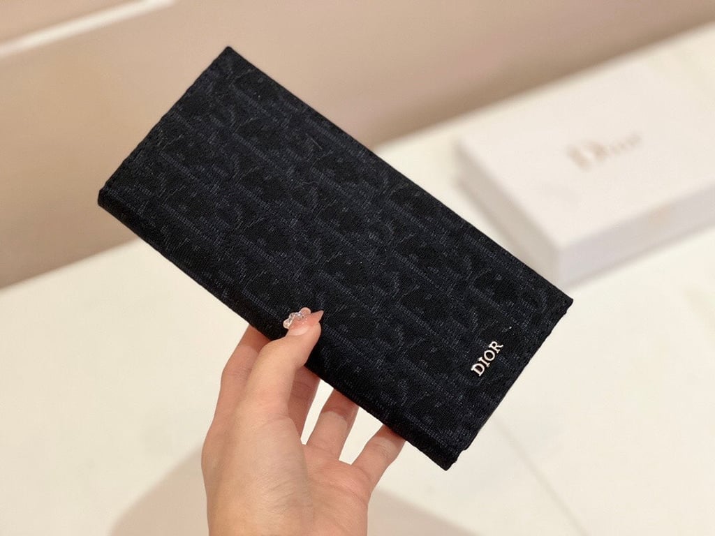 DIOR LONG BI FOLD CARD HOLDER BLACK OBLIQUE JACQUARD 17.5CM 2ESCH147YSE H03E