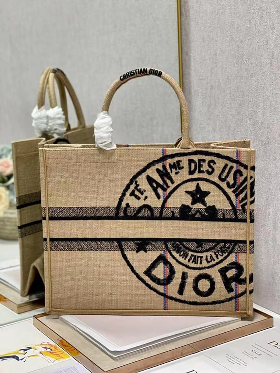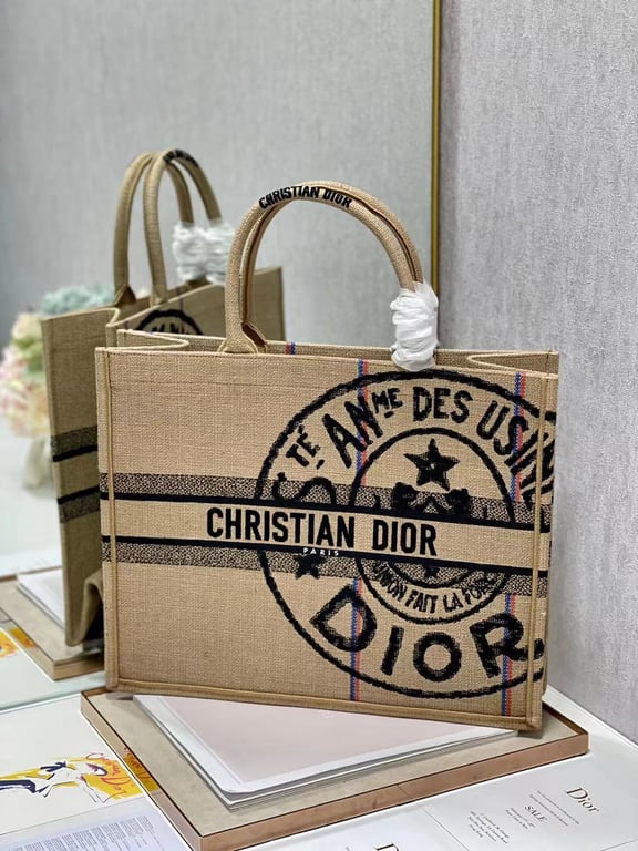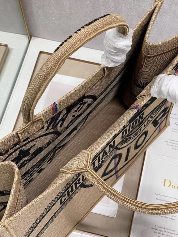 DIOR MEDIUM BOOK TOTE BEIGE JUTE CANVAS EMBROIDERED 36CM M1296ZRUW M918