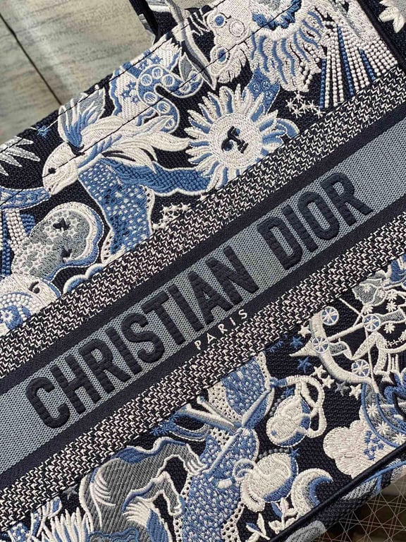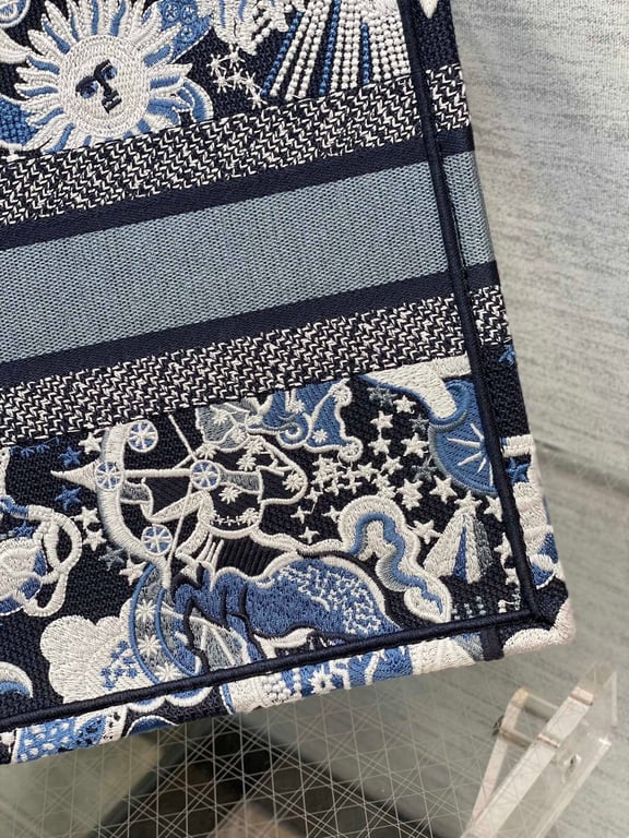 DIOR MEDIUM BOOK TOTE BLUE MULTICOLOR ZODIAC FANTASTICO EMBROIDERY 36CM