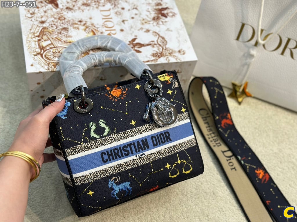 DIOR MEDIUM LADY D-LITE BAG BLACK MULTICOLOR DIOR PIXEL ZODIAC EMBROIDERY 24CM