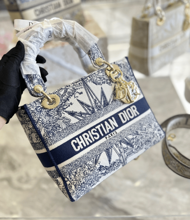 DIOR MEDIUM LADY D-LITE BAG BLUE REEVE D’INFINI EMBROIDERY 24CM M0565ORVX M933