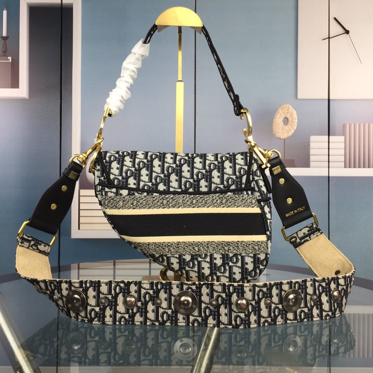 DIOR SADDLE BAG DIOR OBLIQUE EMBROIDERY BLUE 24CM