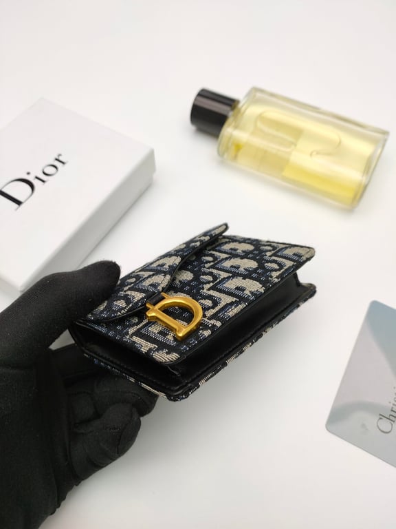 DIOR SADDLE FLAP CARD HOLDER BLUE OBLIQUE JACQUARD S5611CTZQ_M928