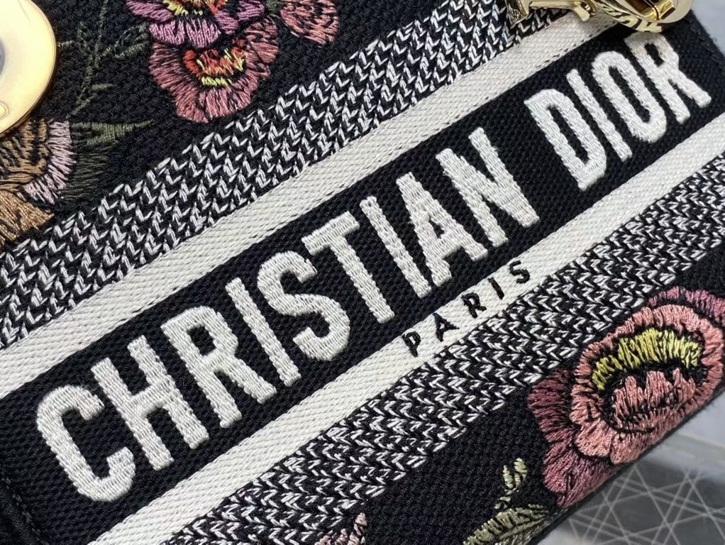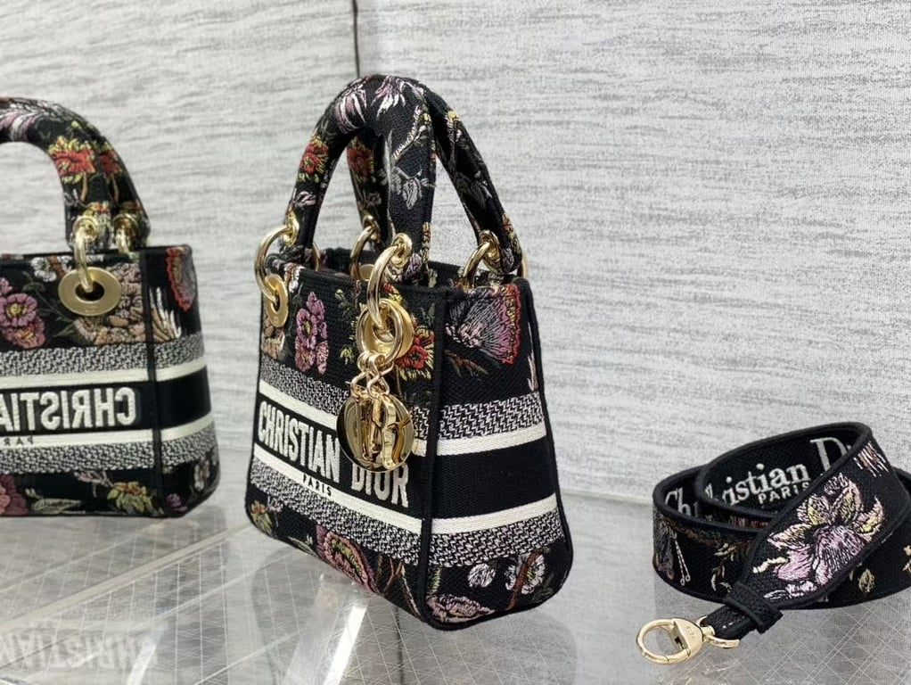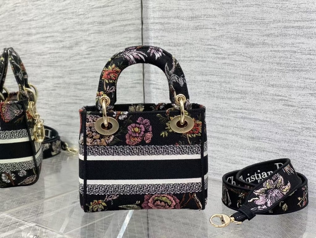 DIOR SMALL LADY D-LITE BAG BLACK JARDIN BOTANIQUE EMBROIDERY 17CM