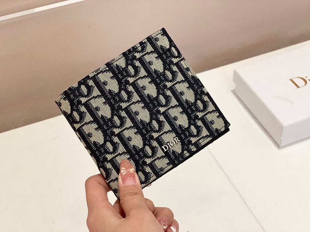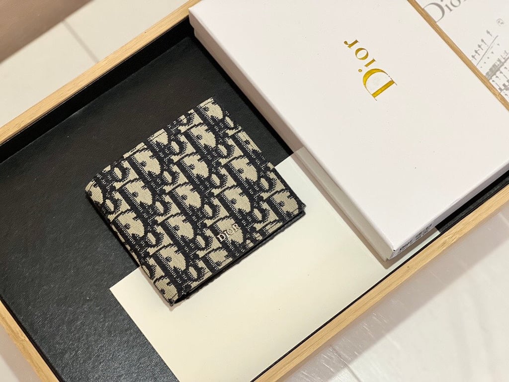 DIOR’S WALLET BEIGE AND BLACK OBLIQUE JACQUARD 11CM 2OBBH027YSE H05E