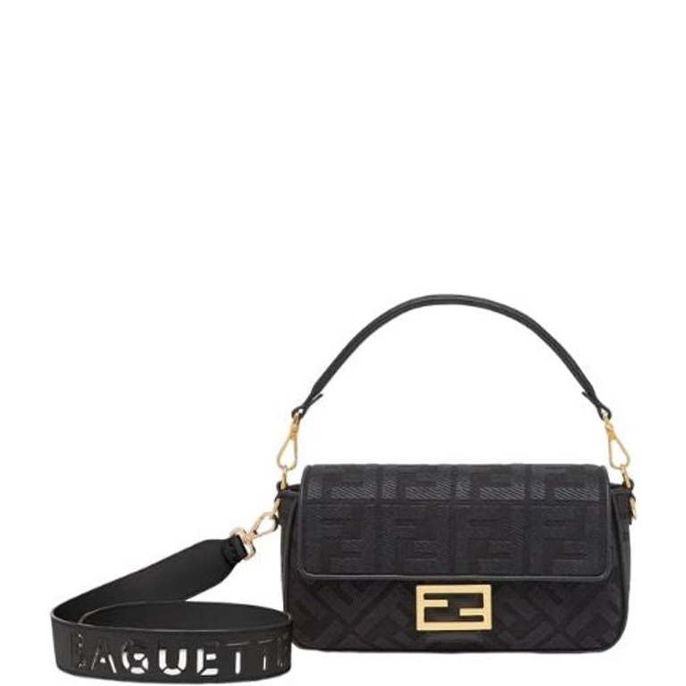 FENDI BAGUETTE CANVAS BAG BLACK 28CM 8BR600AMCDF1CF