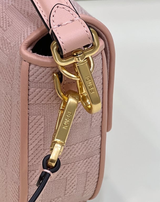 - Baguette bag made of pink canvas with an raised FF motif created with tone on tone embroidery, trimmed in matching-colour leather and adorned with an FF clasp.