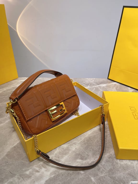 FENDI BAGUETTE LEATHER BROWN NAPPA BAG 20CM