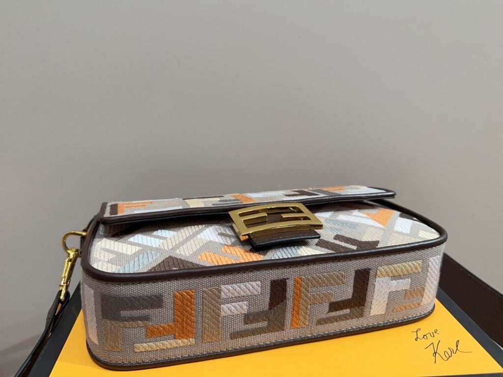 FENDI BAGUETTE MULTICOLOR CANVAS BAG WITH FF EMBROIDERY 25CM 8BR600ANH4F1MQL
