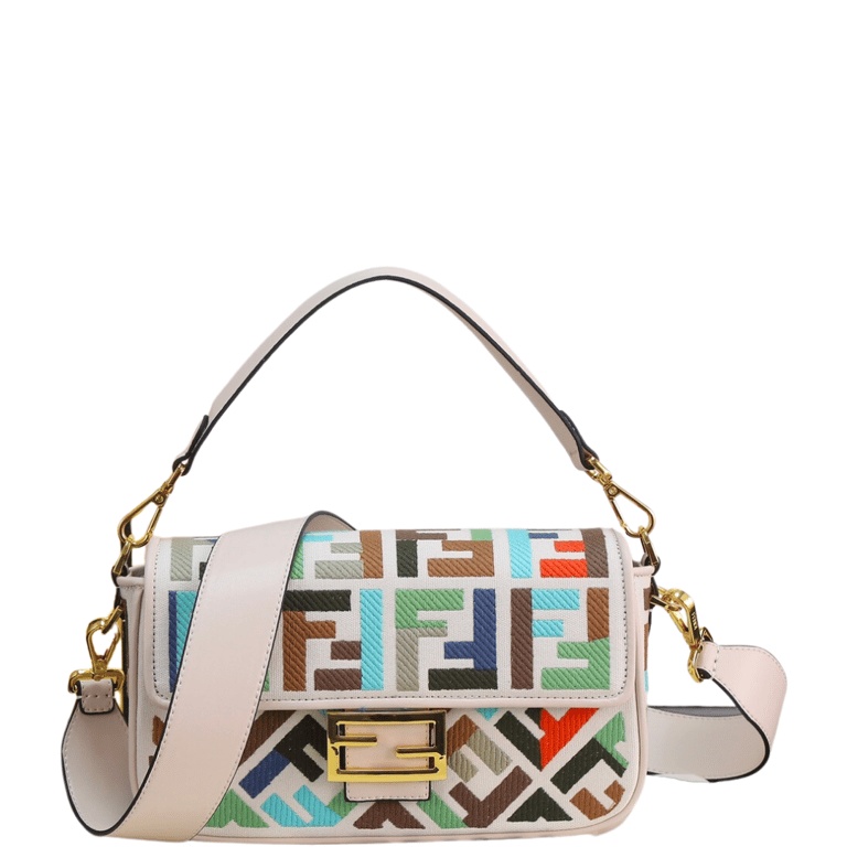 FENDI BAGUETTE WHITE CANVAS WITH MULTICOLOR FF 26CM
