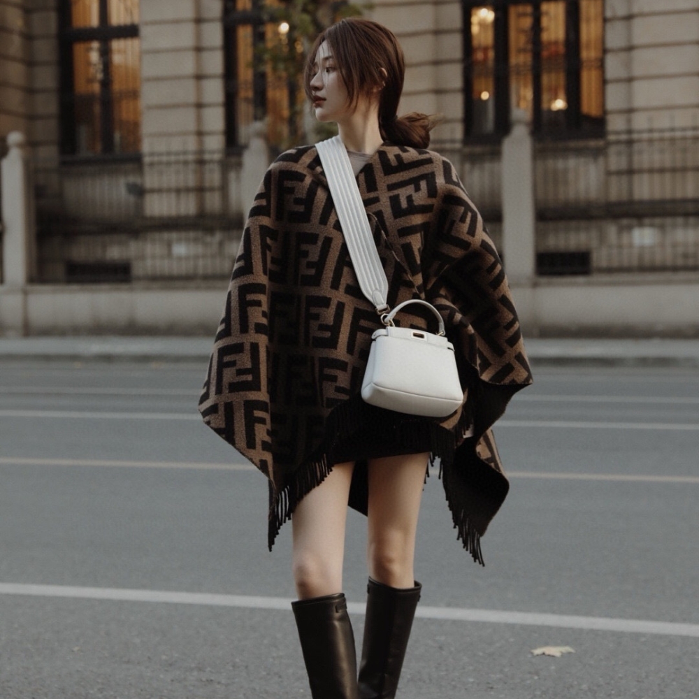 FENDI FF PONCHO MULTICOLOR WOOL AND CASHMERE FXX715AEOWF0QT1