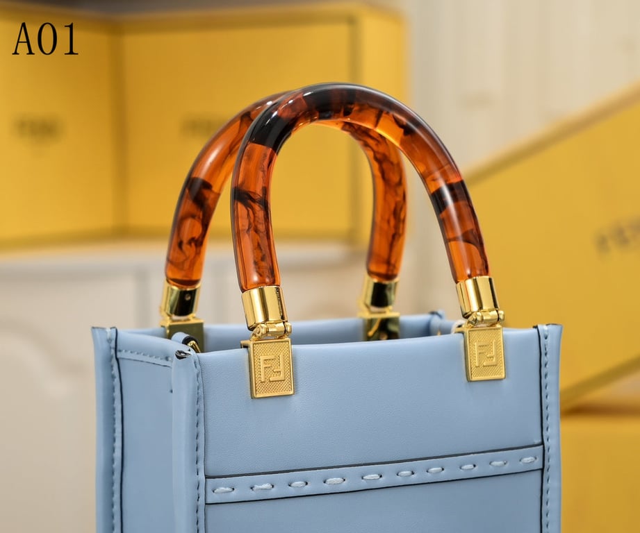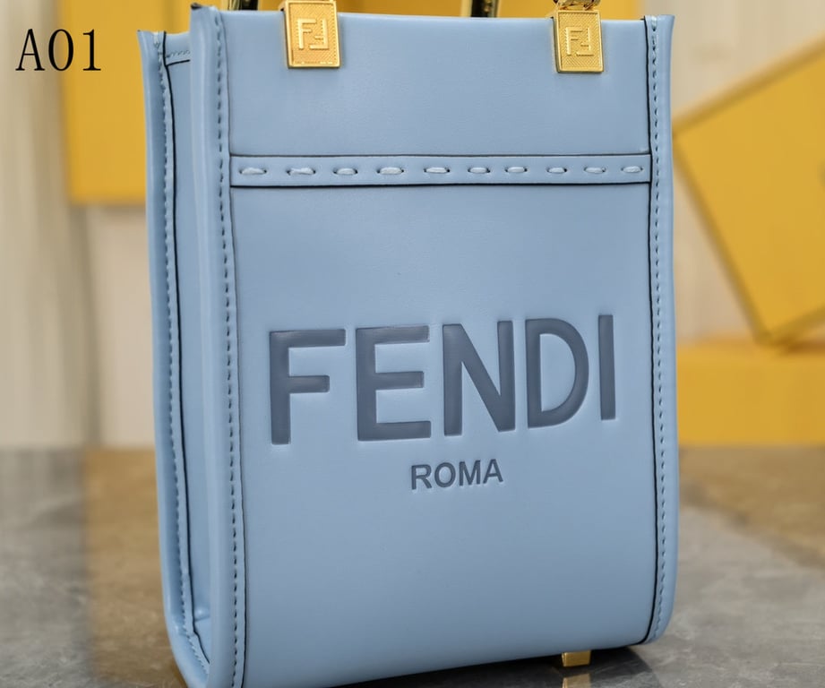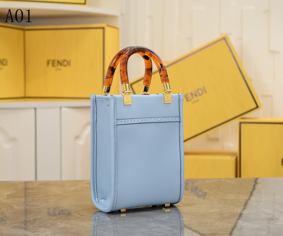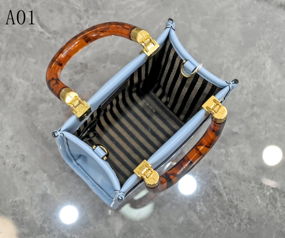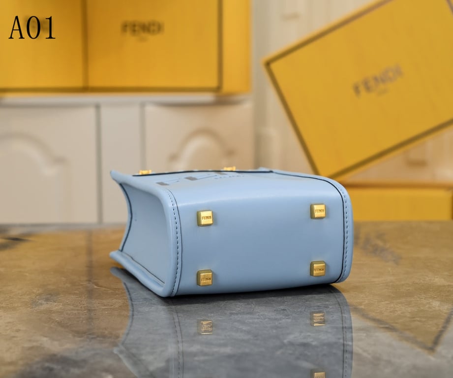 FENDI MINI SUNSHINE SHOPPER BLUE LEATHER BAG 18CM
