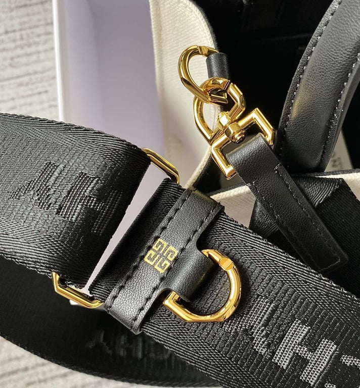 - Wide removable GIVENCHY shoulder strap in canvas jacquard with details and metal ring.