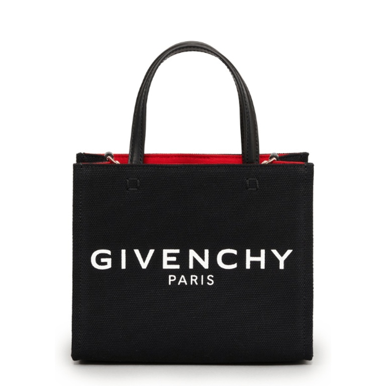 - Wide, removable canvas jacquard shoulder strap with GIVENCHY details and metal ring accents.