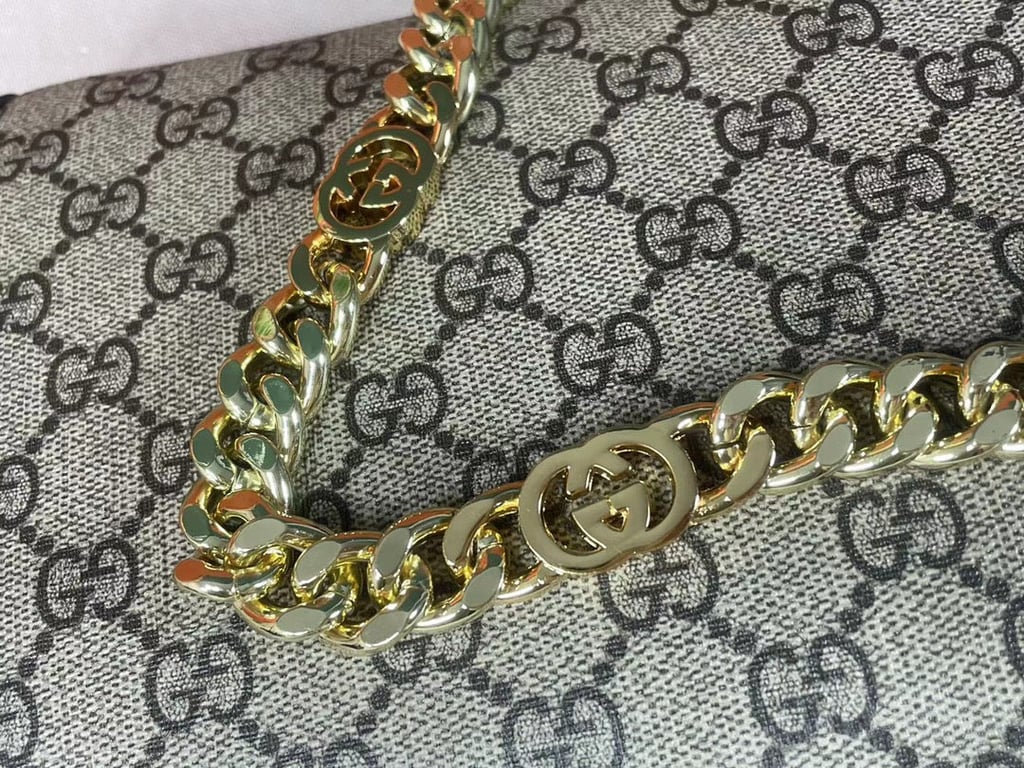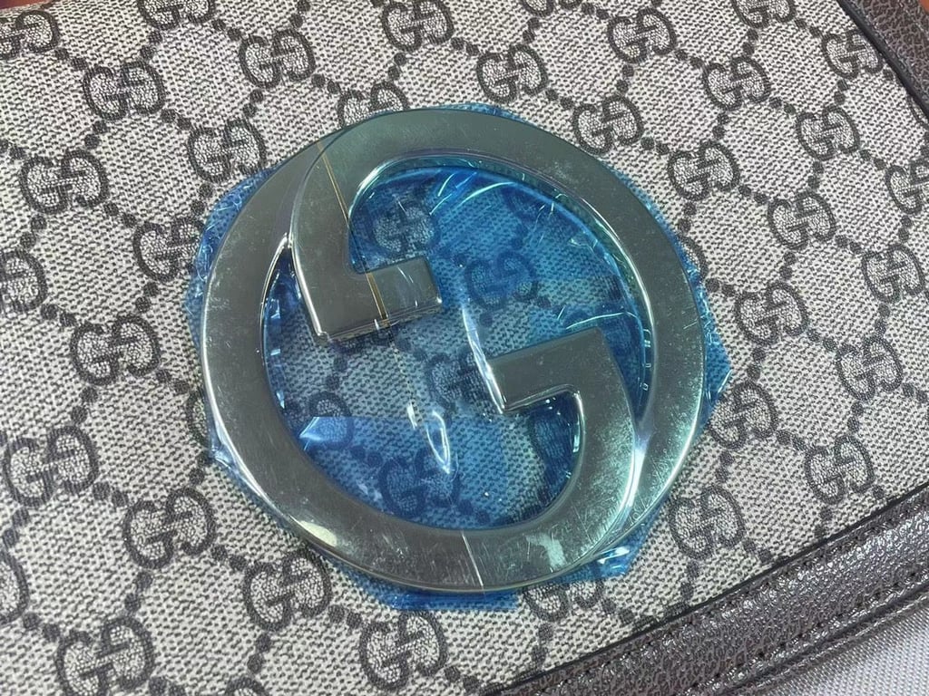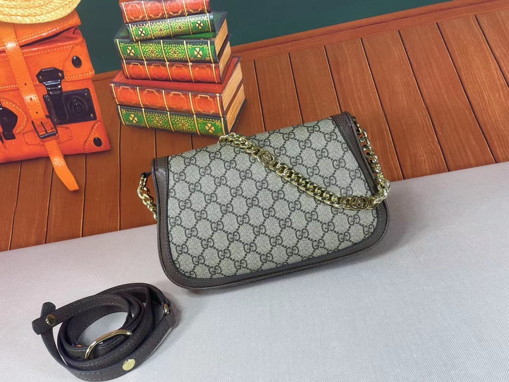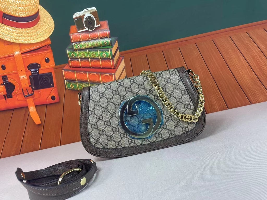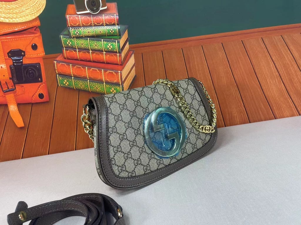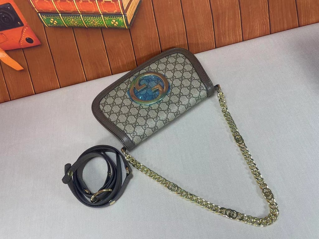 GUCCI 28CM BLONDIE SHOULDER BAG BEIGE AND EBONY SUPREME CANVAS