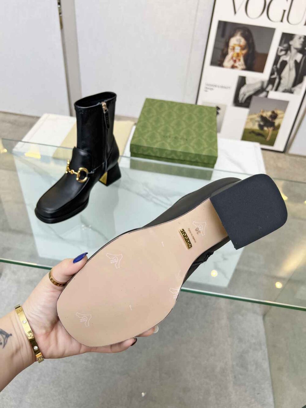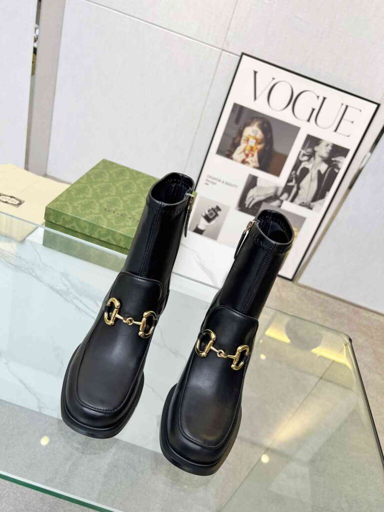 GUCCI HORSEBIT PLAQUE ANKLE BOOTS BLACK