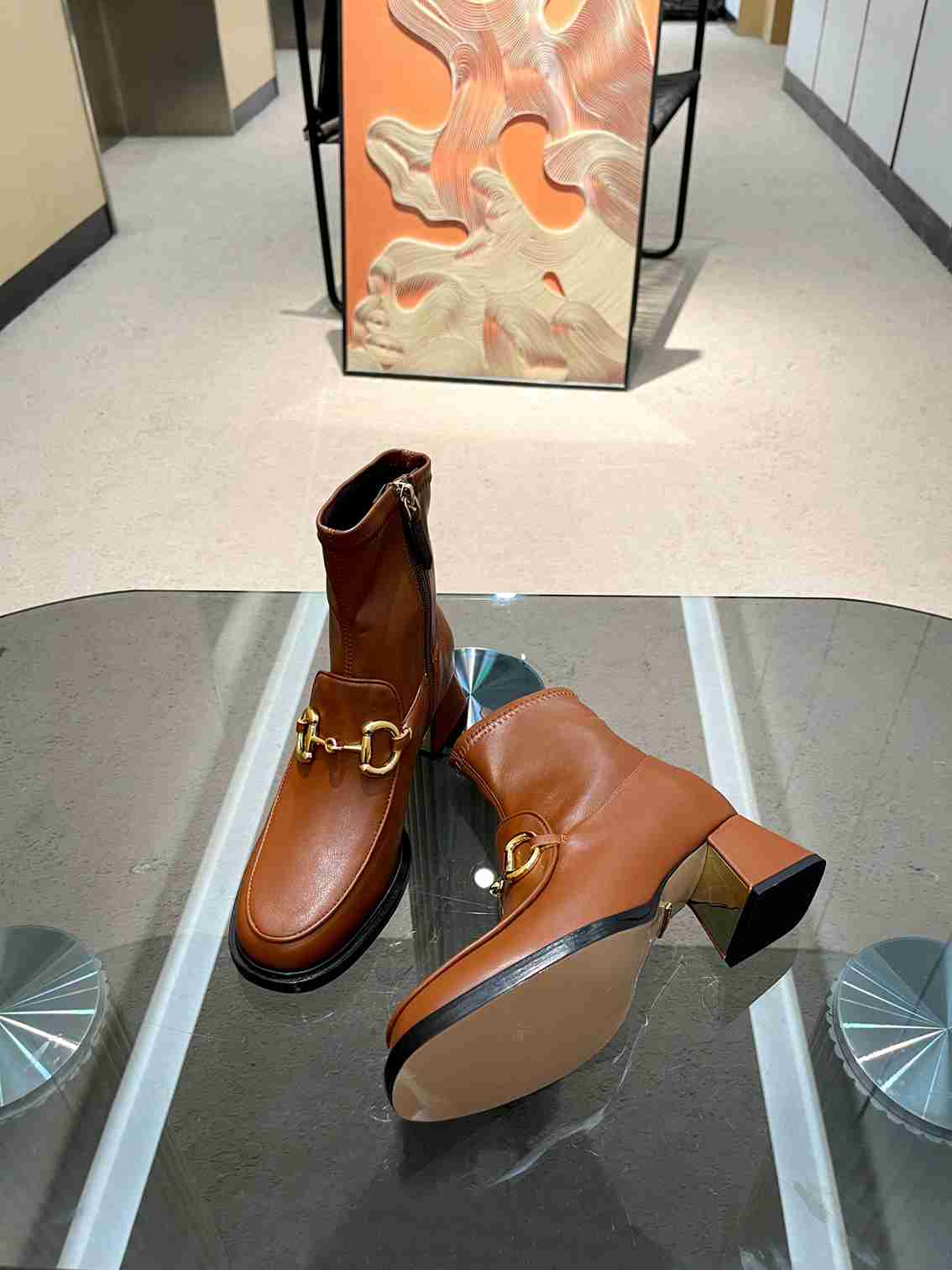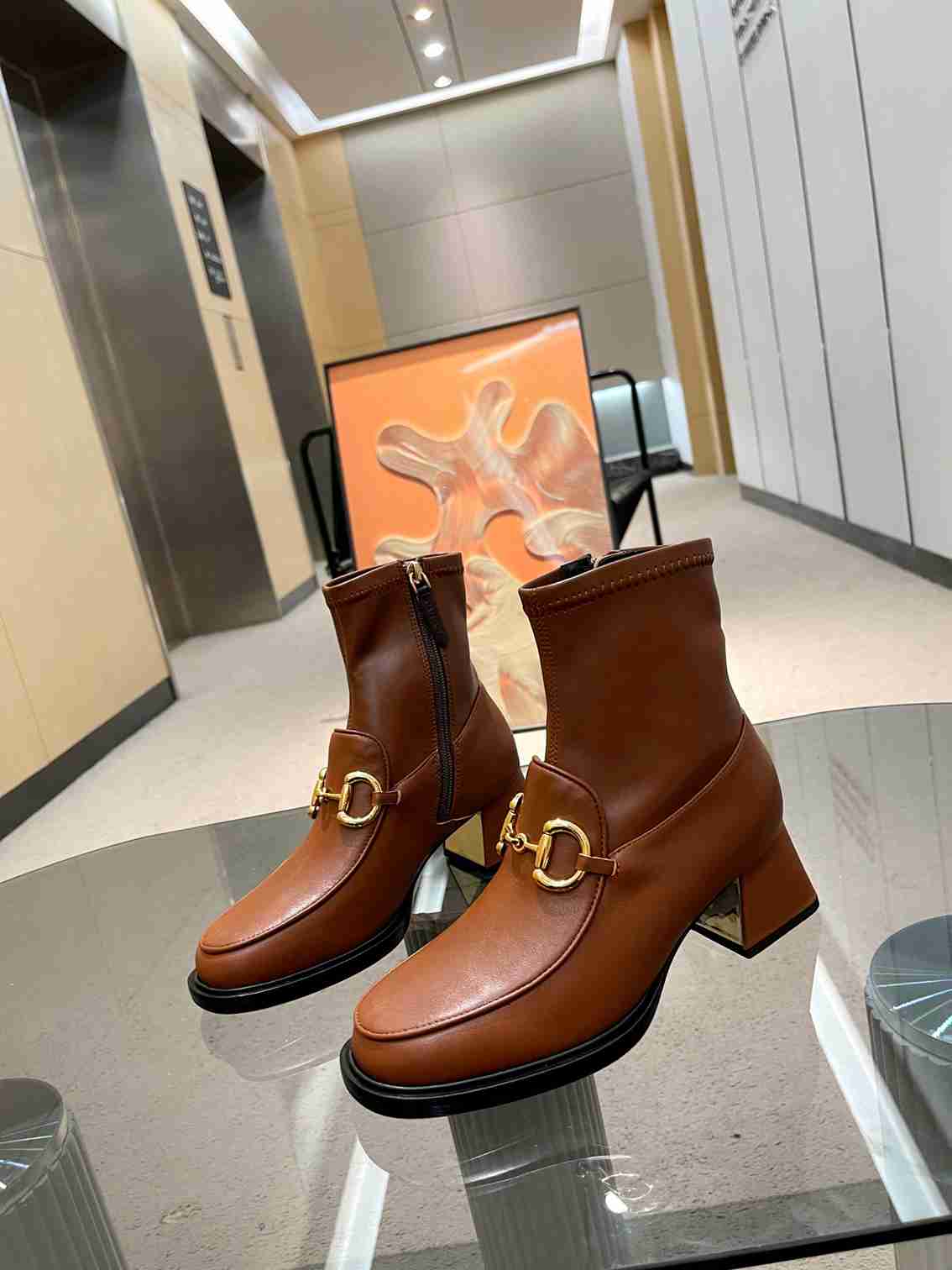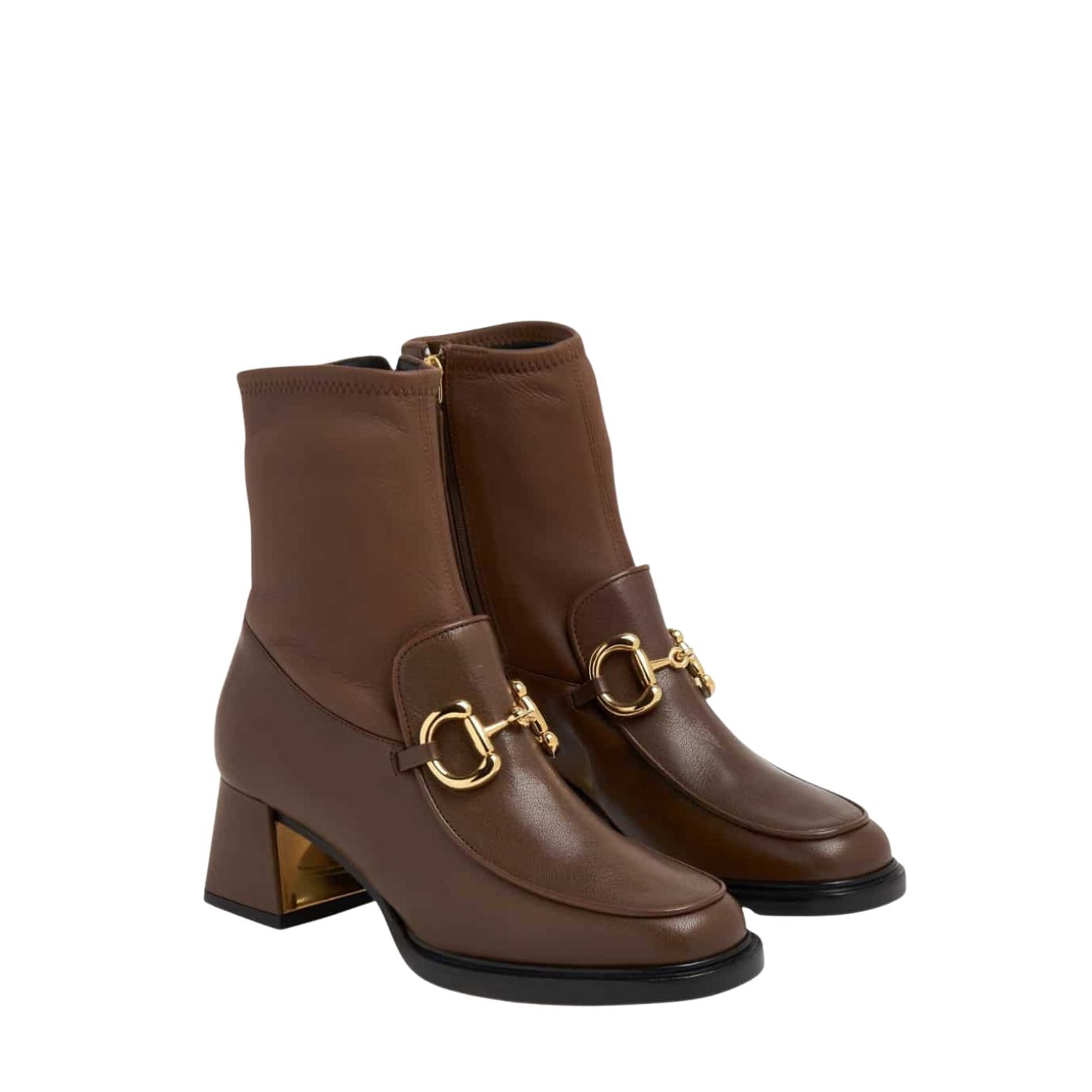 GUCCI HORSEBIT PLAQUE ANKLE BOOTS BROWN
