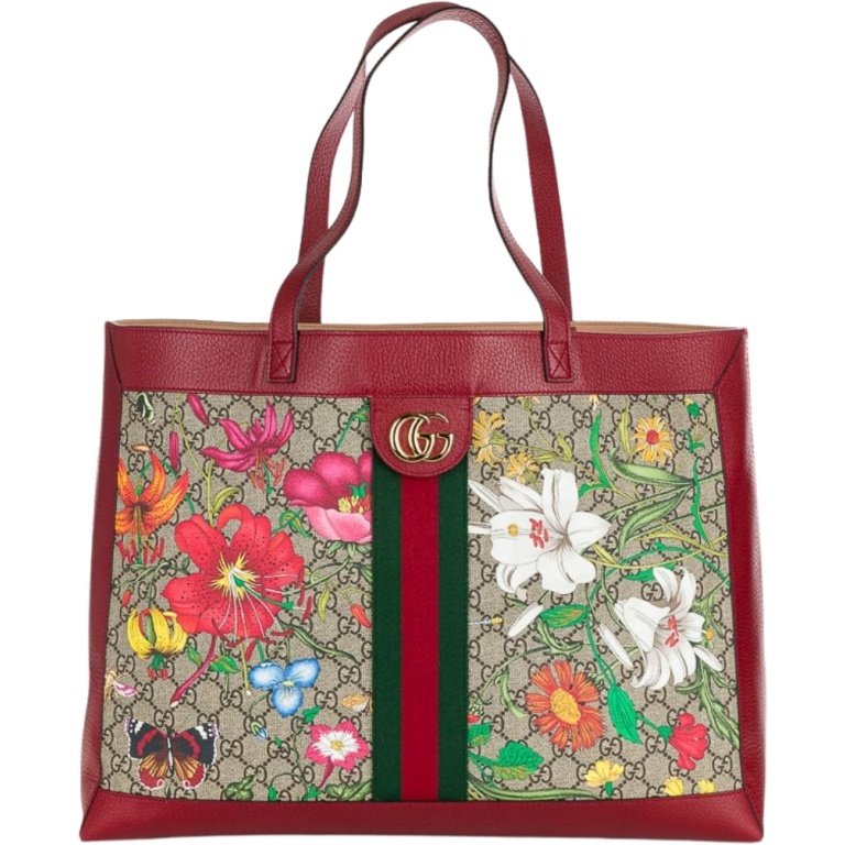 GUCCI RED OPHIDIA GG FLORA MEDIUM TOTE
