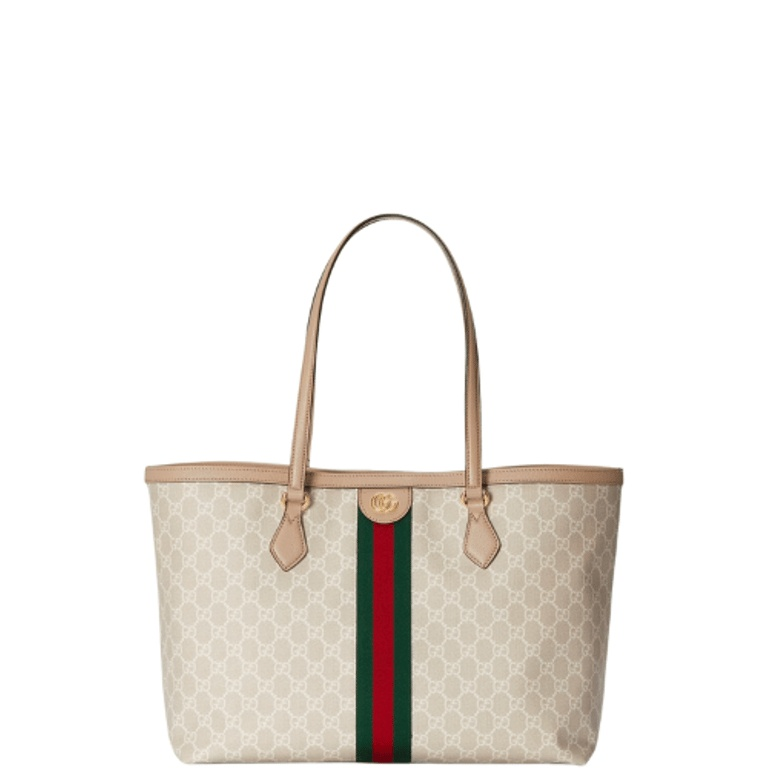 GUCCI’S BEIGE OPHIDIA MEDIUM TOTE WITH WEB