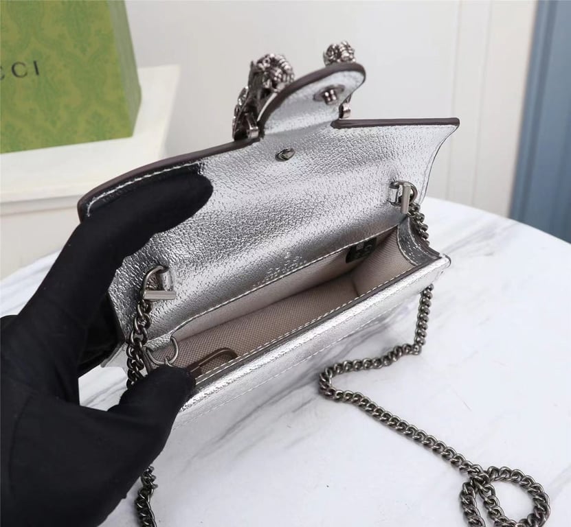 GUCCI WOMEN’S DIONYSUS SUPER MINI CROSSBODY BAG SILVER 16CM 476432 1TRBN 8173