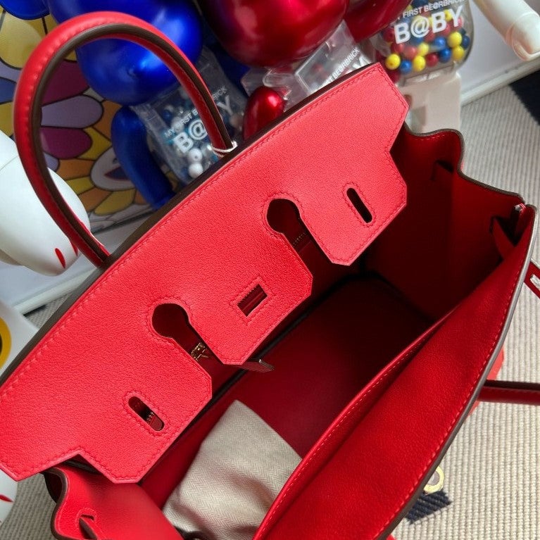 HERMES’S BIRKIN SWIFT S3 BRIGHT RED GOLD HARDWARE 25CM